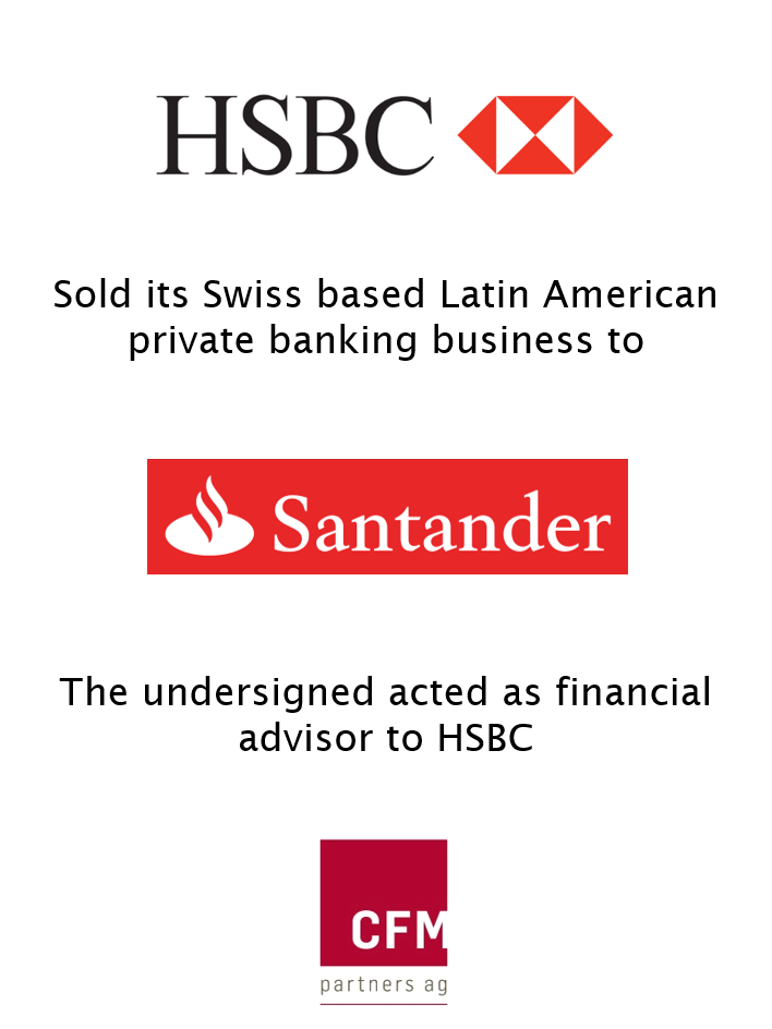 - HSBC Private Bank (Suisse) S.A. (“HSBC”), a big banking conglomerate, provides traditional banking services to a Swiss and international private banking clientele. After a strategic review, HSBC decided to exit the Latin American clients and focus their business on selected core markets. Therefore, HSBC put the Latin American book up for sale.