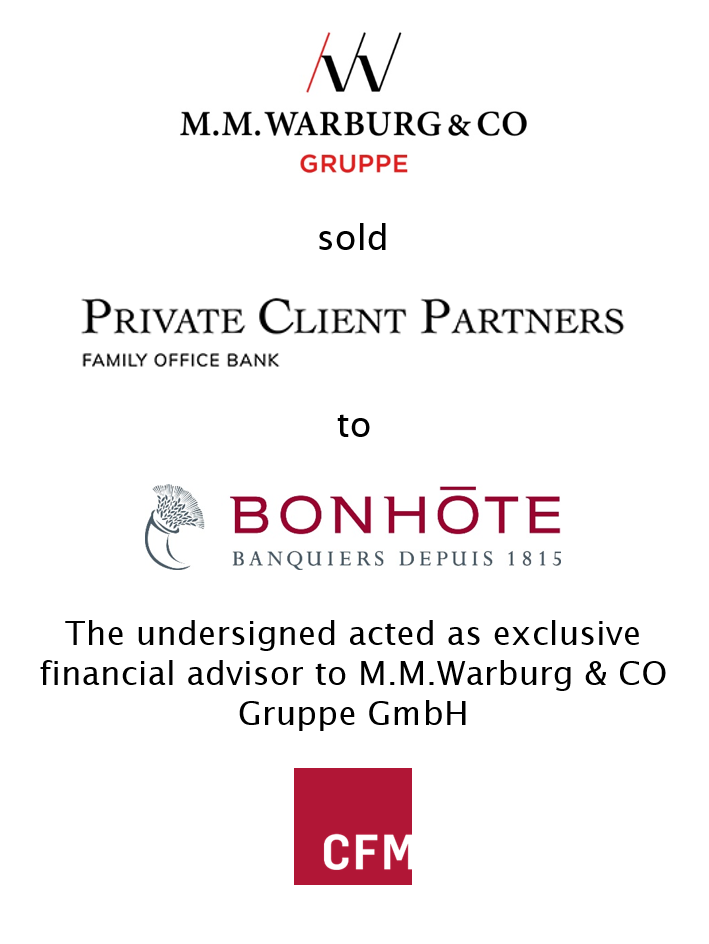 - CFM was mandated by MMW as exclusive financial advisor to provide the whole range of M&A services.
