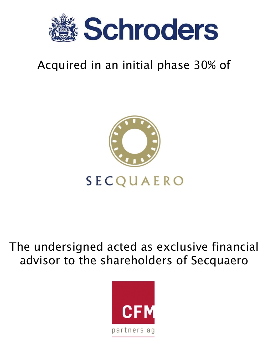 • CFM was mandated by Secquaero as financial advisor to support the transaction.